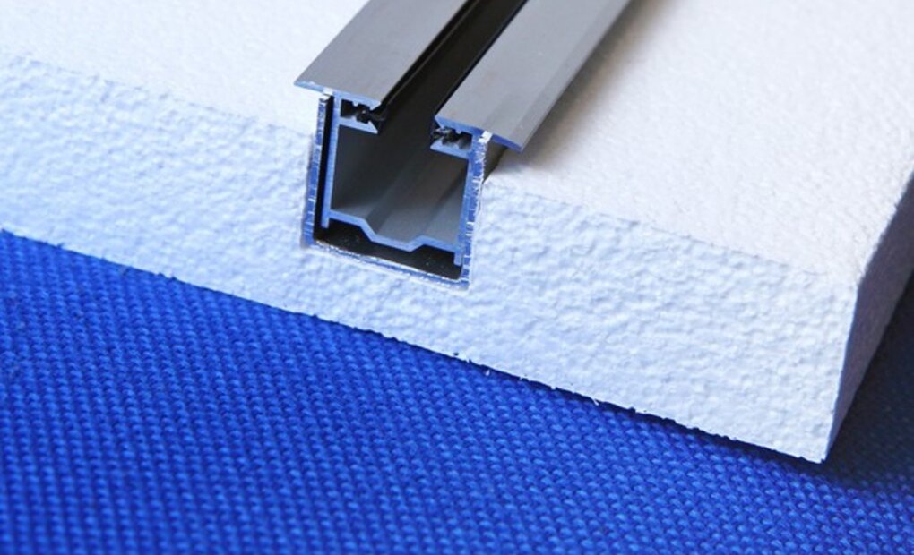 Štartovací U-profil je vyrobený z ohýbaného hliníkového plechu, ktorý je vložený do expandovaného polystyrénu.